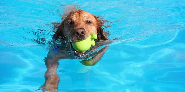 Even dogs adept at swimming can get tired in the water. Canine life jackets and vests come in a variety of bright colors and styles and include reflective stripes and badges. Choose a life jacket if you’re going boating. It will cover more of your dog’s body, increasing buoyancy and visibility. For swimming pools, try a lighter life vest with less material. Remember that just like human life jackets and vests, they need to fit correctly to work.