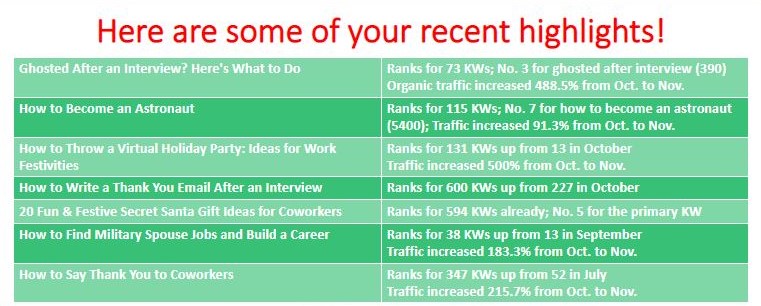 I’m an SEO writer with proven results. Here are the results.